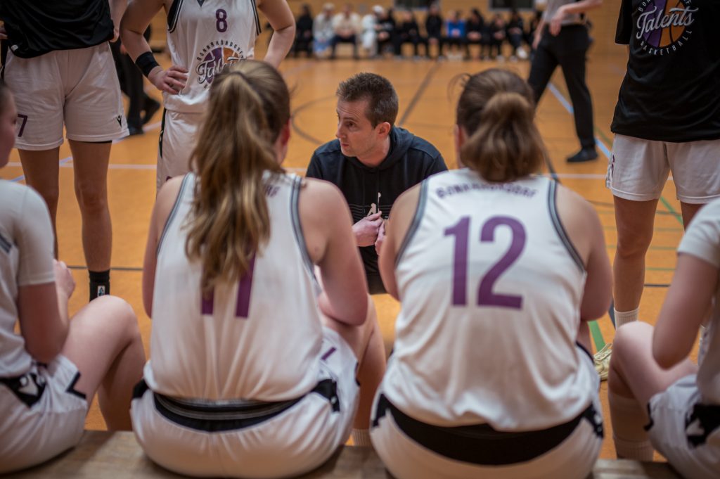 Doch mit den ersten Einwechslungen von Headcoach Johannes Sünnen kam ein Bruch ins Talents-Spiel. Bis zum Viertelende gelangen nur noch vier Punkte und auch die Bergischen Löwen kamen nun besser in die Partie (22:9). Der Spielfluss war auch im zweiten Viertel noch weitgehend dahin. Die Talents taten sich mit den jetzt mutiger auftretenden Gästen schwer, die vor allem von Topscorerin Pauline Weiß (17 Punkte) angetrieben wurden. Coach Sünnen bat seine Frauen zwischenzeitlich zum Gespräch und forderte vollen Einsatz ein – mit zunächst noch mäßigem Erfolg. Der Spielabschnitt ging letztlich an die Löwinnen. Die Talents hatten es versäumt, ihren guten Start bis in die Halbzeitpause zu konservieren (33:24).